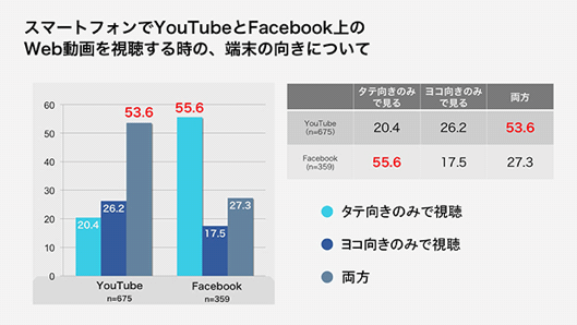 YouTubeではタテヨコ両方、Facebookではタテ向きのみで動画を視聴