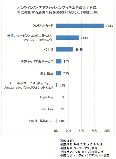オンラインストアでの決済:クレジットカードに次いで「後払い」が多い