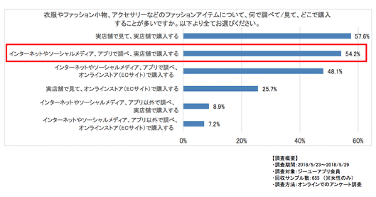 ジーユーの「リアルファッションラボ」は、同社アプリを利用する女性会員655人を対象に「ファッションアイテム購入時における情報源および購入経路に関する実態調査」を実施した。