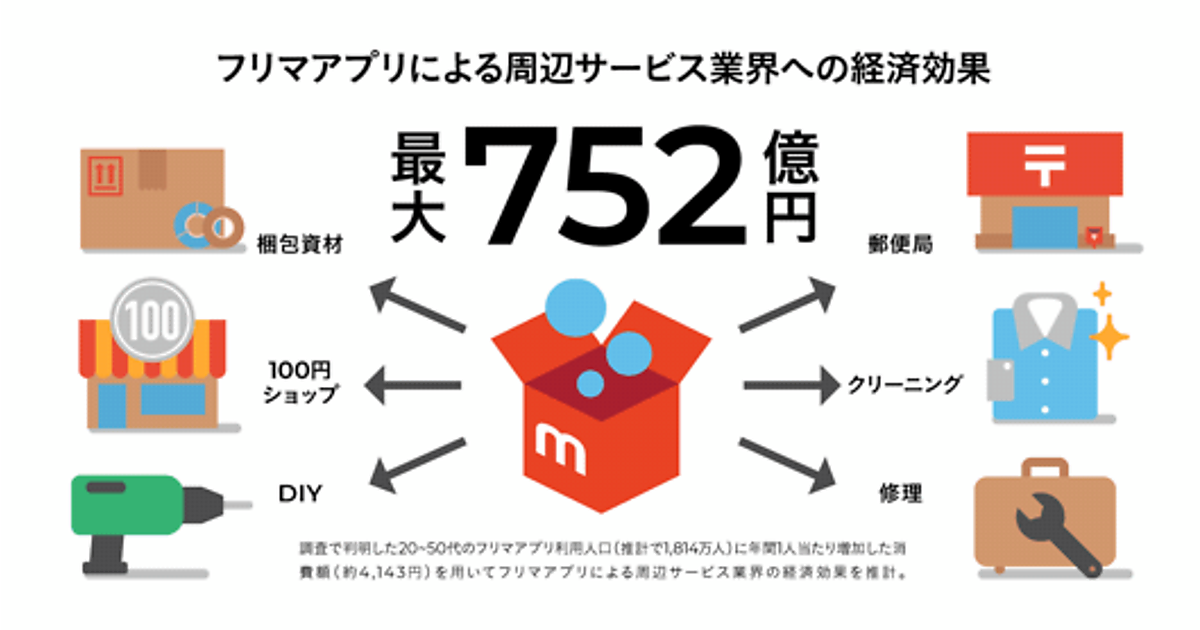 フリマアプリ利用人口は1,814万人。周辺サービス市場への経済効果は年間752億円