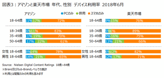 アマゾンと楽天、7割以上が「スマホのみ」で利用。若年層では8割を超える