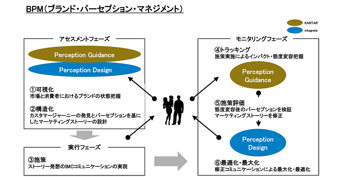 ブランド・商品の認知だけでは購買につながりにくく、消費者の行動に加えて頭の中のパーセプションの変化を基点にするマーケティング戦略が必要だと考えた。BPMはインテグレートが強みにしているパーセプションに基づく戦略設計・実施と、カンター・ジャパンの消費者・市場インサイト(深層心理)評価手法を連携させる。