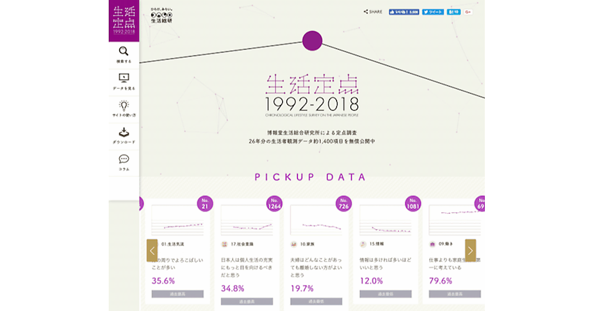 「生活定点」調査のほぼ全てのデータを無償公開する「生活定点WEBサイト」も、2018年調査結果を加えてアップデートされた。