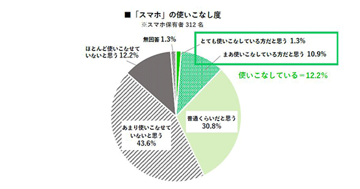 「スマホ」を保有しながらも、使いこなせていると自信があるのは12%のみ