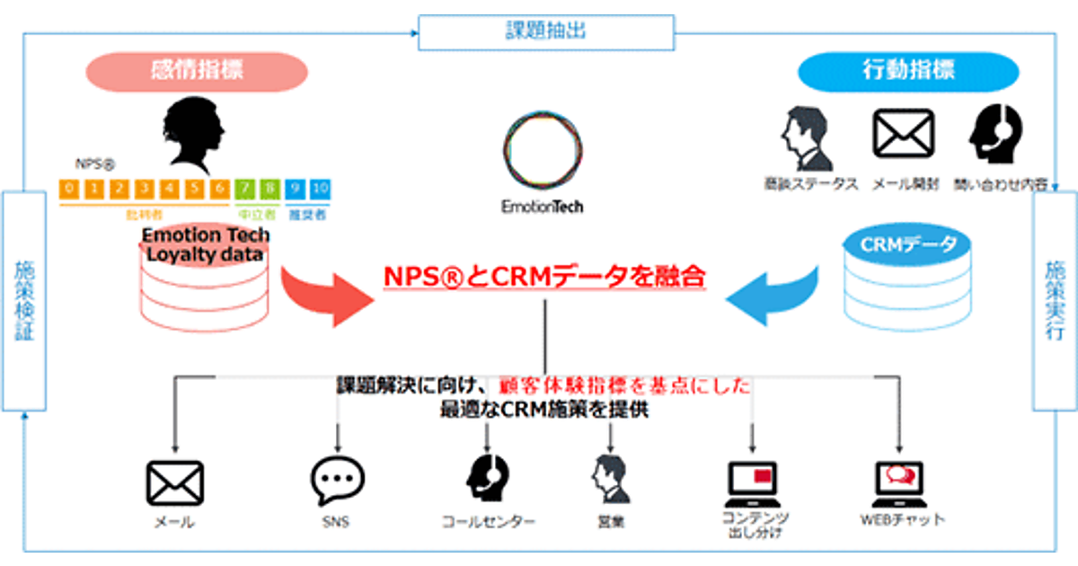 電通と電通デジタルは、カスタマー・エクスペリエンスの向上をサポートするエモーションテックと連携し、企業やブランドに対する愛着・信頼の度合いを指標化したNPS(Net Promoter Score)データと、顧客の感情・行動データを融合することで、顧客体験指標を基点にしたCRM戦略支援サービスを開発し、10月18日よりサービスの提供を開始した、と同日発表した。