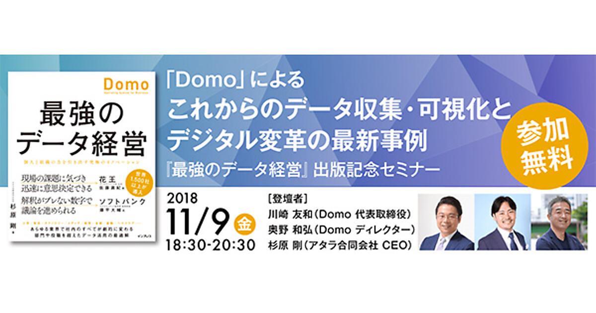 『最強のデータ経営 個人と組織の力を引き出す究極のイノベーション「Domo」』の発売を記念し、無料のセミナーをインプレスが11/9(金)に神保町で開催する。
