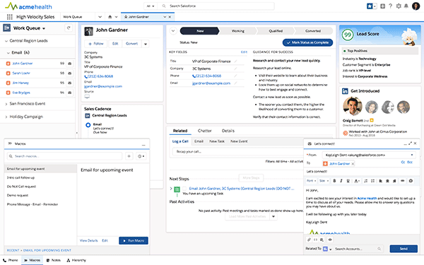 このようなプロセス全体をHight Velocity Sales上で設計できるようになるため、新人、ベテランの経験を問わず効率よくインサイドセールスを行うことができる。メールのテンプレートなども用意されている。