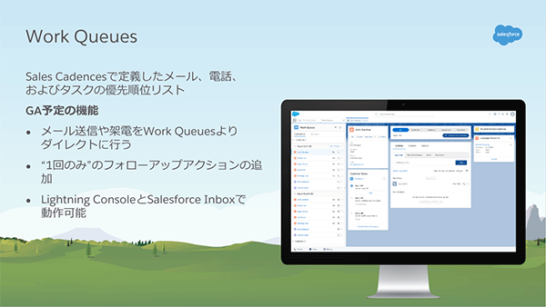 また、新機能の「Work Queues」では、優先度の高いリードを自動で判別し、電話やメールなどのアクションすべきリードの優先順位付けをしてくれるという。