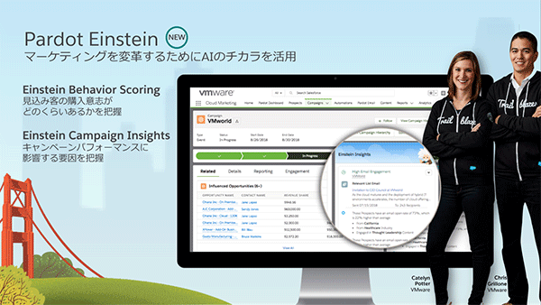マーケティングオートメーションの「Pardot」にAI機能の「Einstein」とデジタルエクスペリエンスを短期間に構築できる「Lightning」が統合された。