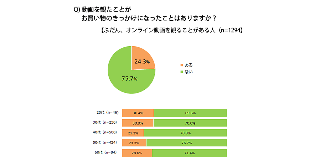オンライン動画を観たことがお買い物のきっかけになったことがある人は、4人に1人。