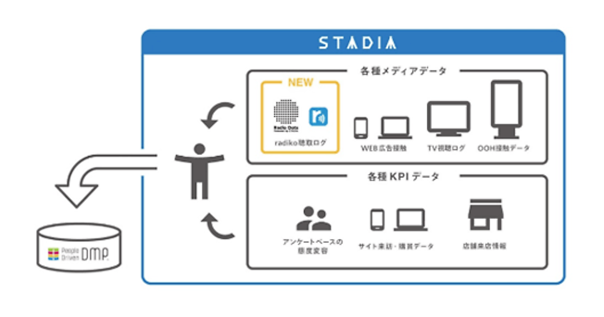 電通は、テレビ広告、インターネット広告、OOH広告(交通広告や屋外広告など家の外にある広告)を統合するマーケティングプラットフォーム「STADIA」の機能を拡張した、と11月20日発表した。ラジオ広告を統合するツール「Radio Dots」を開発して運用を始めた。実行動データを使った統合分析を日本で初めてラジオ広告で可能にした。