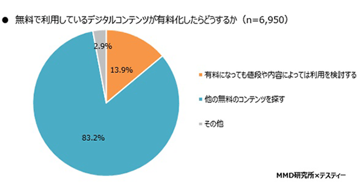 無料で利用しているデジタルコンテンツが有料化した場合、83.2%が「他の無料のコンテンツを探す」