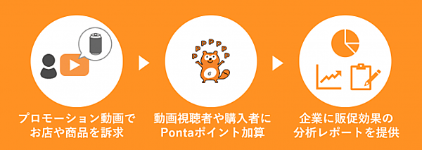 スマートフォンやWebサイト上の動画コンテンツは企業のプロモーションでの活用が増えている一方、動画視聴による販促効果の把握が難しいという課題があった。動画視聴による販促効果分析サービスは、店舗や商品のプロモーション動画の視聴者や視聴後の購入者にPontaポイントをプレゼントすることで、Ponta会員の動画視聴と購買を促す。