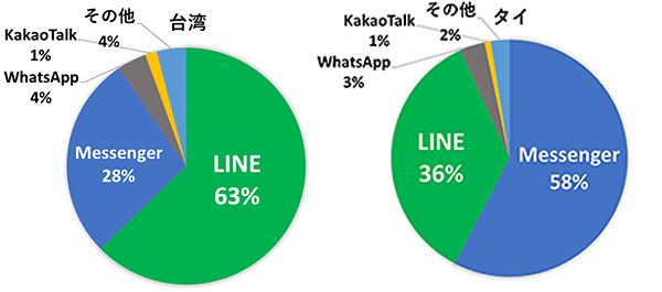 台湾・タイ共に主な連絡手段は「Messenger」と「LINE」