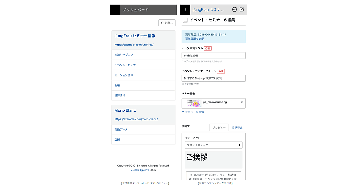 CMS(コンテンツ管理システム)と関連サービスを展開するシックス・アパートは、同社のCMSプラットフォーム「Movable Type 7」をアップデートするとともに、Movable Type 7を基にした企業向け上位版「Movable Type Advanced」の提供を始めた、と1月16日発表した。アップデートでは管理画面をモバイル機器に最適化した。