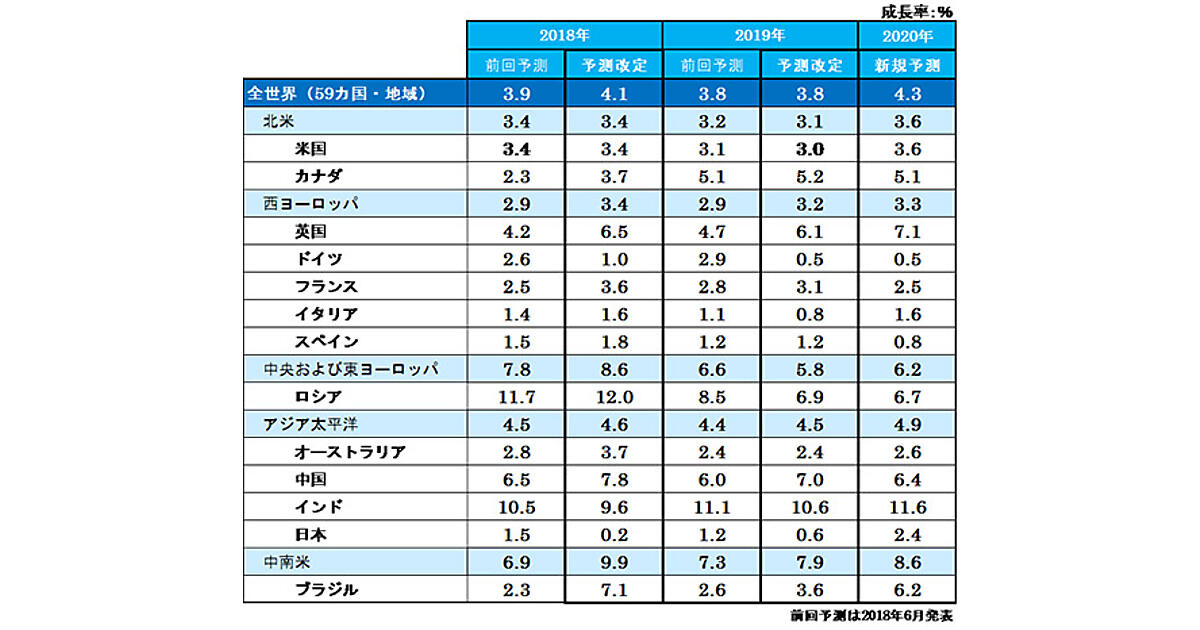 また、2019年は主にアジア太平洋と北米地域がけん引し3.8%(前回予測も3.8%)、2020年は世界的な経済成長を背景に4.3%(新規予測)の成長となる見通しである。引き続き主にデジタル広告がけん引し、堅調な成長が続くと予測した。