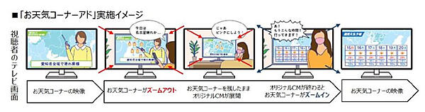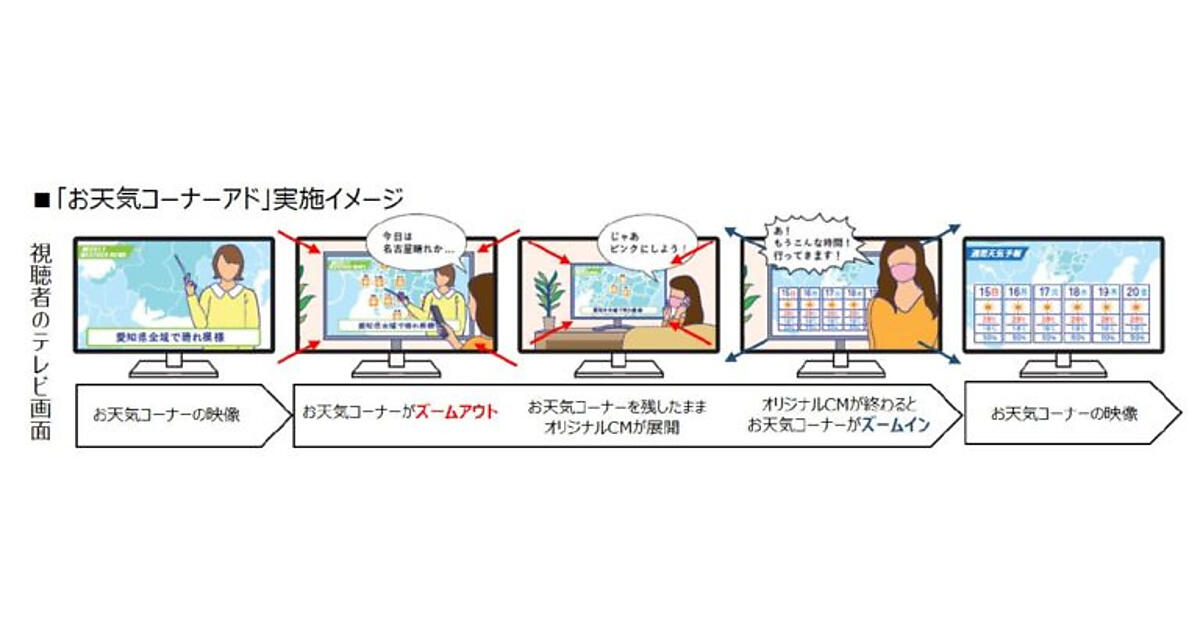総合メディア事業の博報堂DYメディアパートナーズは、テレビの生放送番組の天気予報と連動してテレビCMの効果を高める取り組みを名古屋テレビ放送(メ~テレ)と協働で実施する、と1月25日発表した。1月28日~2月1日の5日間連続で行う。生放送の番組内容と連動した独自手法「フレキシブルアド」を活用する。