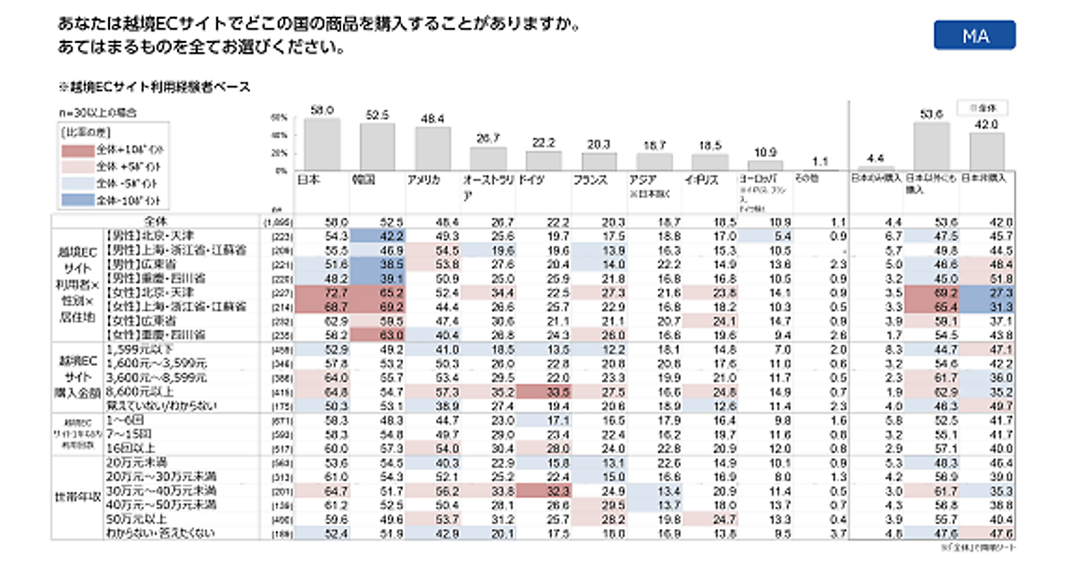 越境ECサイトで購入する商品は、日本が最多。特に女性の高額購入者が多い