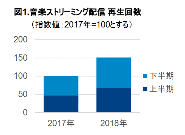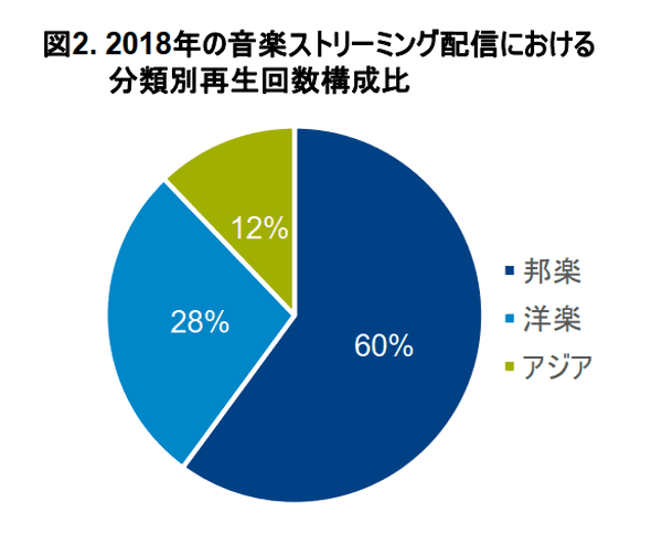 - 【調査対象】主要ストリーミング音楽配信サイト(2018年12月末時点)における再生実績に基づく