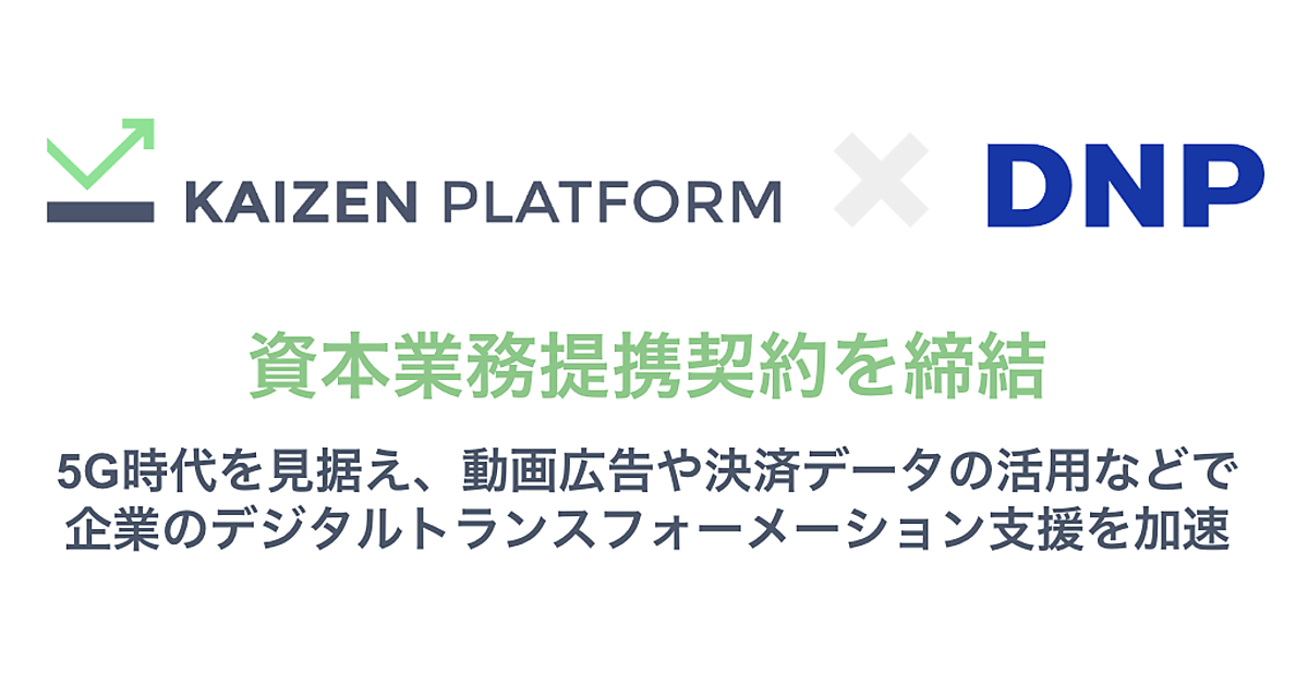大日本印刷(DNP)は、ウェブサービス改善ツール事業のKaizen Platformと資本・業務提携契約を結んだ、と3月1日発表した。大容量データの高速通信が可能な次世代モバイル通信「5G」の普及を見据え、動画を生かしたマーケティングの強化や、スマートフォンなどのモバイルサイトでの体験価値向上に向けて共同で取り組む。