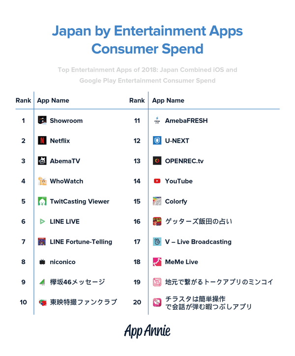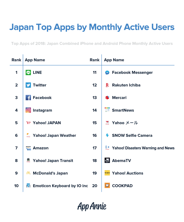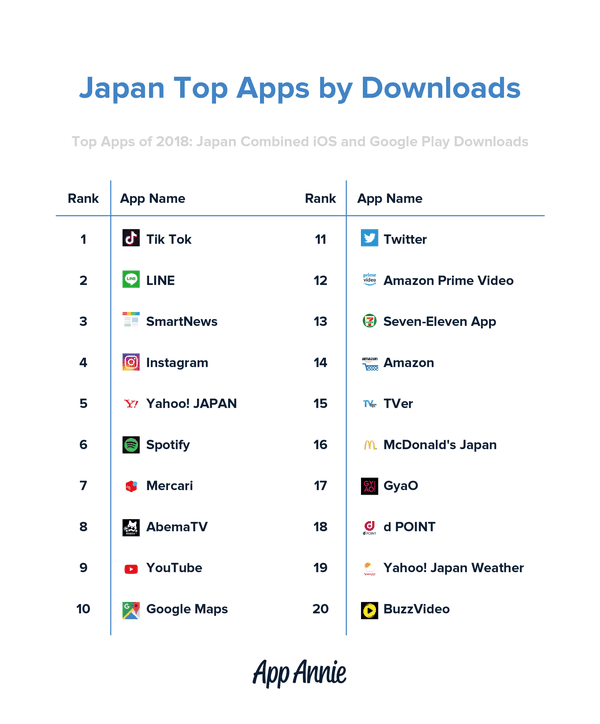 App Annie(アップアニー )は、2018年のアプリパブリッシャートップ52を発表した。トランプカードになぞらえて、通年でのアプリ収益による世界トップ企業52社を、同社が表彰するもので、2011年より調査を実施している。今回はトップ52と併せて、2018年日本国内のダウンロード数、収益、月間アクティブユーザー数ランキング、注目カテゴリのアプリランキングも発表された。