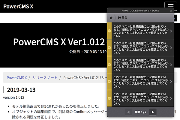 追加した機能のほか、PowerCMSにはWebアクセシビリティの向上を助ける「データエントリー画面(記事/ページ)の作成・編集画面でのJIS X 8341-3 AA、A項目の自動検証」「データエントリー画面でのリンクチェック機能」「データエントリー画面での画像の代替テキストと画像のコントラスト比のチェック機能」などがある。