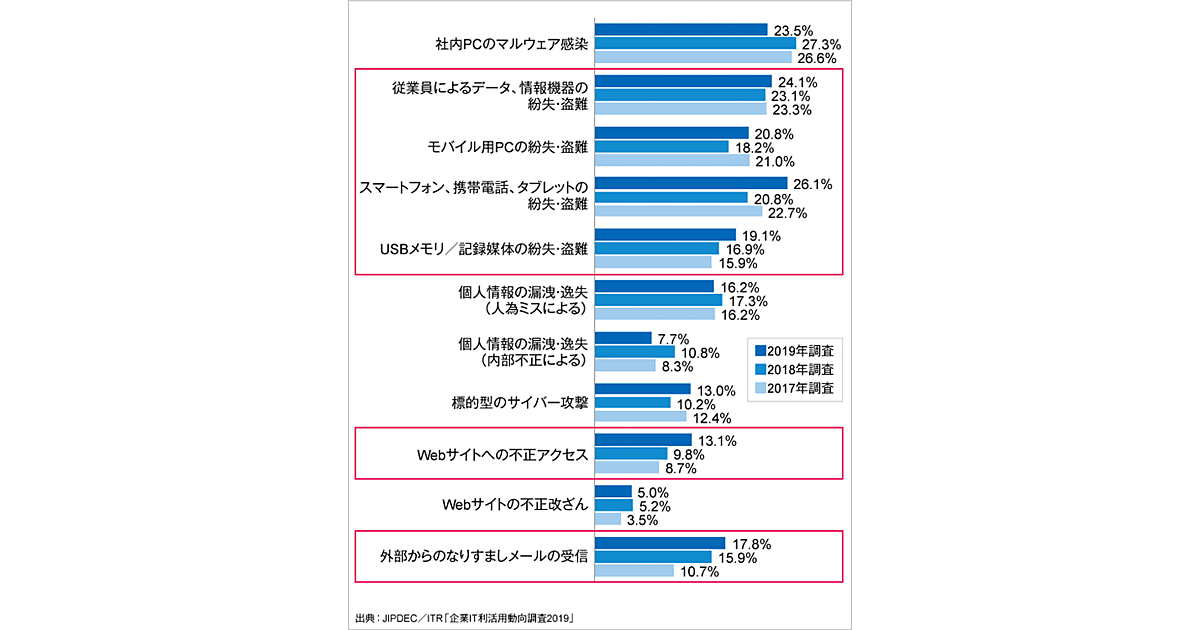 “サイバー攻撃”が増加する一方、従来の“紛失・盗難”にも要注意
