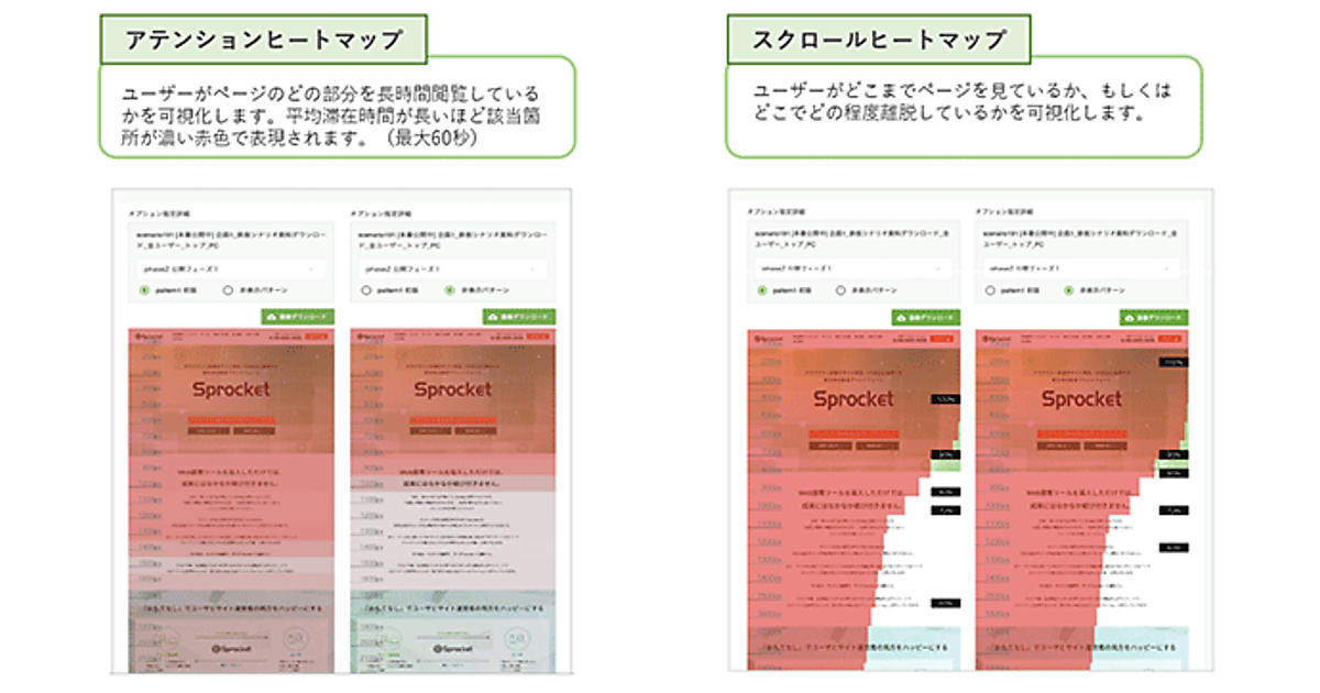 ウェブ接客プラットフォーム開発のSprocketは、同社のウェブ接客ツール「Sprocket」にヒートマップ分析機能を加えた、と4月10日発表した。行動データを使った柔軟なサイト分析とシナリオ効果の可視化が可能で、ウェブ接客の効果を高められる。検証では三井住友カードのコンバージョン(最終成果)率が111%改善した。