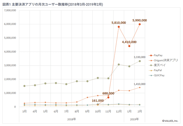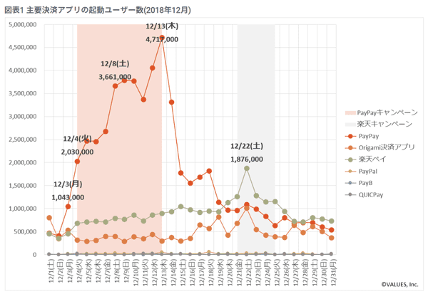 ヴァリューズは、スマートフォン決済アプリ「PayPay」の利用動向、キャンペーンの効果などを分析した結果を発表した。