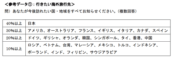 引き続き「行きたい国・地域」で日本は人気、欧州で訪日意向が伸長