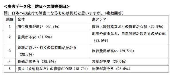 「費用・言葉・距離」が訪日の阻害要因、東アジアでは「震災」「災害」も