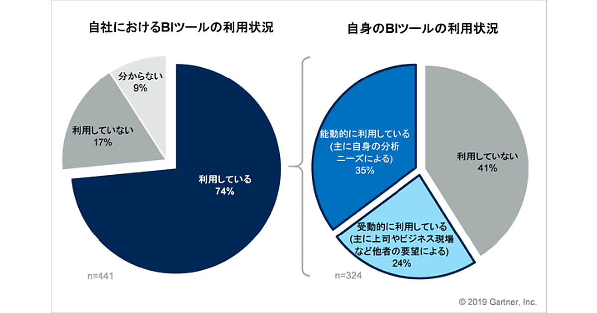 ガートナーは、国内企業における「ビジネス・インテリジェンス(BI)ツール」の導入状況・利用実態に関する調査結果を発表した。日本国内(主に首都圏、大阪圏、名古屋圏)で働くビジネス・ワーカーが対象。