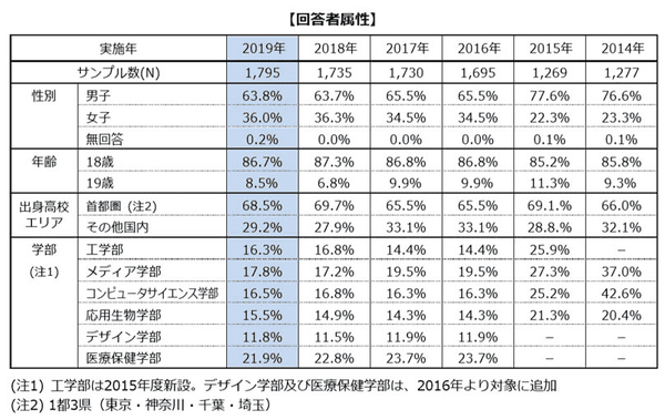 - 【調査対象】2019年度の東京工科大学の新入生(八王子キャンパス、蒲田キャンパス)