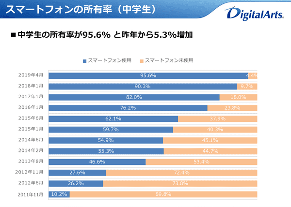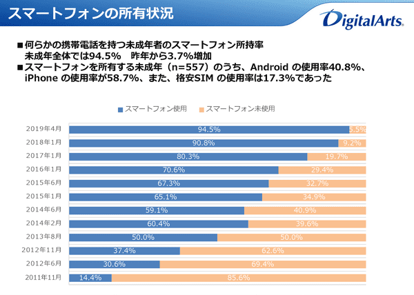 小・中・高校生の94.5%がスマホ使用、1日平均3.7時間