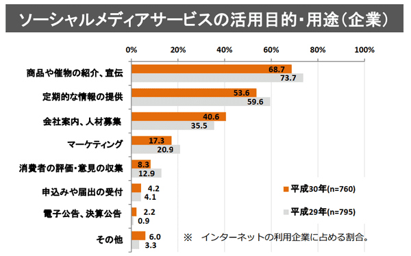 SNSの企業利用、「会社案内・人材募集・申し込み受付」での用途が上昇【総務省調べ】