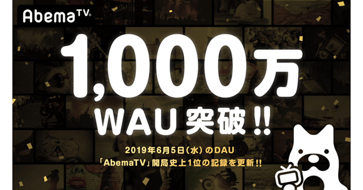 インターネット広告のサイバーエージェントやテレビ朝日などが出資するインターネットテレビ局のAbemaTV(アベマティーヴィー)は、2019年6月3~9日のインターネットテレビ「AbemaTV」のウイークリーアクティブユーザー(WAU)=1週間あたりの利用ユーザー=が、1000万を突破した、と6月10日発表した。