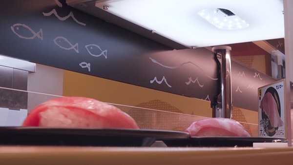 同店には業界初の「画像認識による自動皿会計システム」を導入した。テーブルの両端に設置したカメラで皿を画像認識し、テーブルごとに皿の数を自動でカウント。会計待ちの時間を短縮し、数え間違いのトラブルをなくす。オーダー品を届ける際の従業員の負荷を減らす仕組み「キッチン内オートウェイター」も採用した。