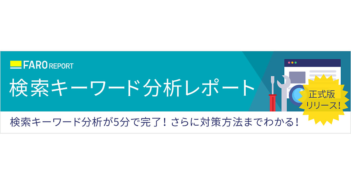 検索キーワードは日別や機器別で確認でき「〇〇で検索!」といったウェブキャンペーンの効果も分かる。検索キーワード分析レポートはこれまで、FARO REPORTの有料プラン契約者に「FAROサーチコンソールレポート(β版)」の名で先行して無料提供していた。機能を改善して名称変更し、全利用者に展開する。3000円から。