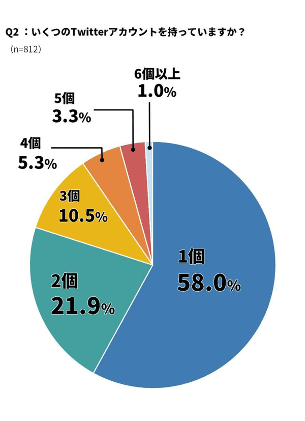 さらに、アカウント所有者812人に、「アカウントの所有数」を聞くと、「1個」58.0%が最多。残る約4割が複数アカウントを所持していた。本アンケートでの最多所有数は15個だったという。