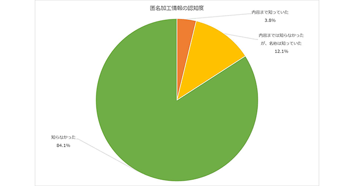 匿名加工情報を知っているか質問したところ、「知っている」と答えた回答者は15.9%。そのうち、匿名加工情報の内容まで知っていた回答者はわずか3.8%にとどまった。