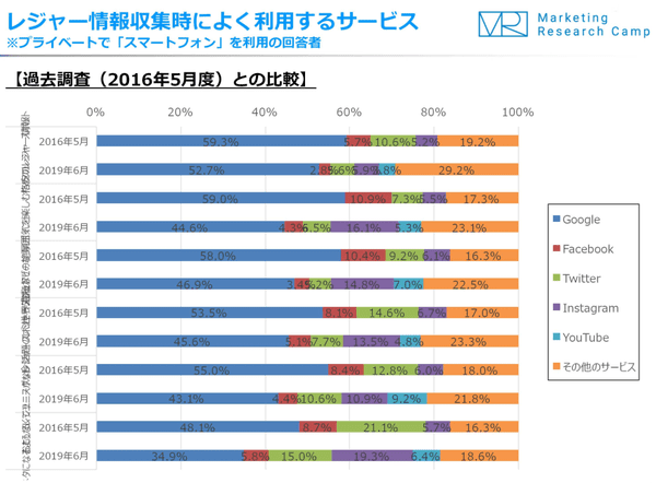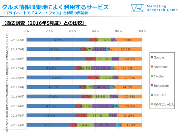 なおこの調査では、レジャー情報やグルメ情報の収集方法についても調査しており、ここでもInstagramの増加傾向が見てとれる。「インスタ映え」というブームと同時に、「インスタで情報収集も」というスタイルが一般化したと言っていいだろう。