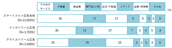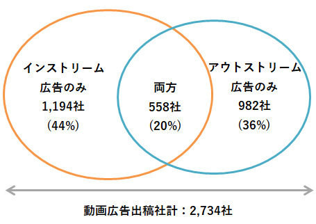 一方でその他カテゴリを見ると、インストリーム広告は「飲食業」「他の食品」「病院・診療所・医療関連」「普通自動車」などが、アウトストリーム広告は「結婚情報関連会社」「金融情報」「住宅関連情報」「楽器楽曲販売店」と重複がない。それぞれの特性に合わせ、使い分けが定着していることが伺える。