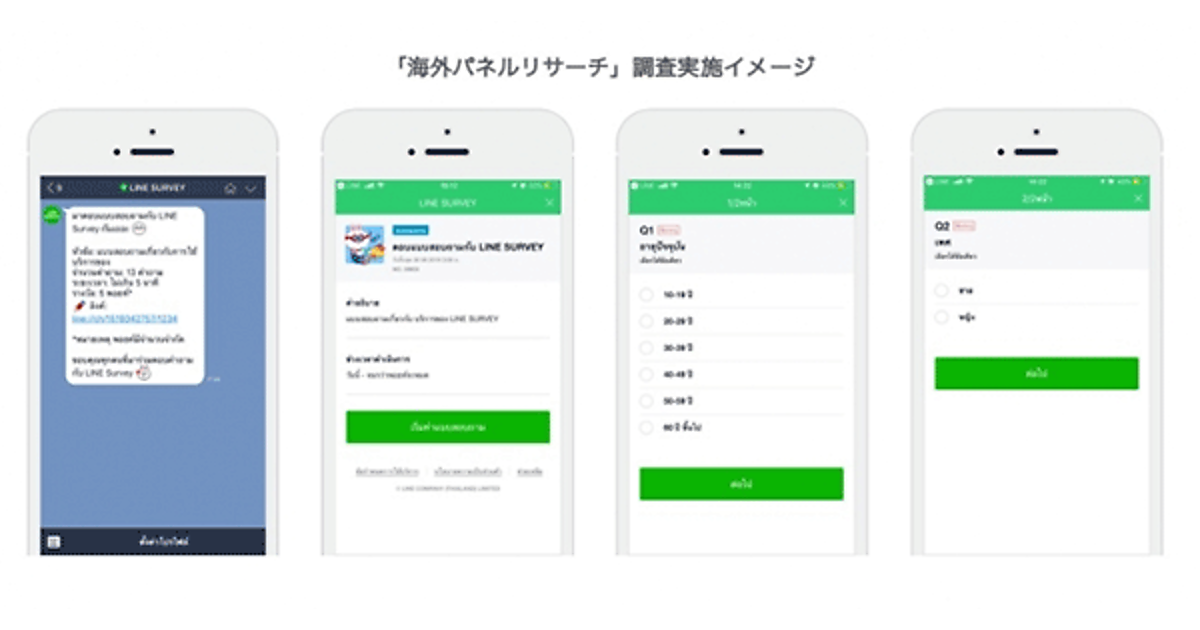 LINEは、スマートフォン専用のリサーチプラットフォームとして展開する「LINEリサーチ」で、新しいメニュー「海外パネルリサーチ」を始めた、と8月7日発表した。台湾とタイに住むパネルを対象に調査が可能。LINEが保有する台湾約45万人、タイ約133万人のパネルに向け、居住地域などを指定してアンケートが配信できる。