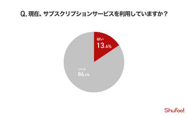 そこで、「聞いたことがある」「知らない」と答えた97.8%に対し、「サブスクリプションサービスとは、定額制サービスの総称であること」「音楽配信の『Spotify』、動画配信の『Hulu』などが代表的なサービスであること」を伝え、改めて「現在サービスを利用しているかどうか」と聞くと、13.6%が「利用している」と回答。「サブスクリプションと言われても分からないが、実際にはサービスを利用している」層が一定数存在することがあきらかとなった。