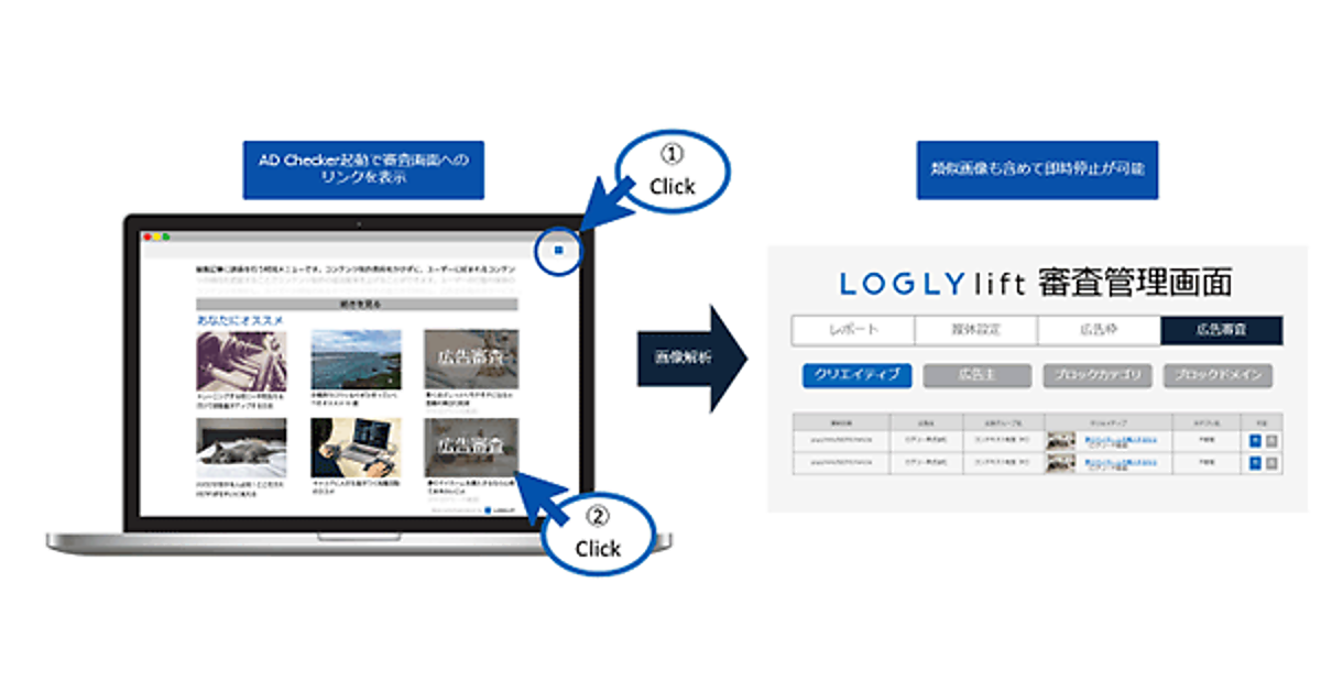 アドテクノロジー事業のログリーは、同社のネイティブ広告プラットフォーム「LOGLY lift for Publisher」においてWebページから広告審査画面と連携して即座に広告を停止することができ、メディアのブランド毀損を防ぐ広告審査機能「AD Checker」を8月21日より提供開始する、と同日発表した。