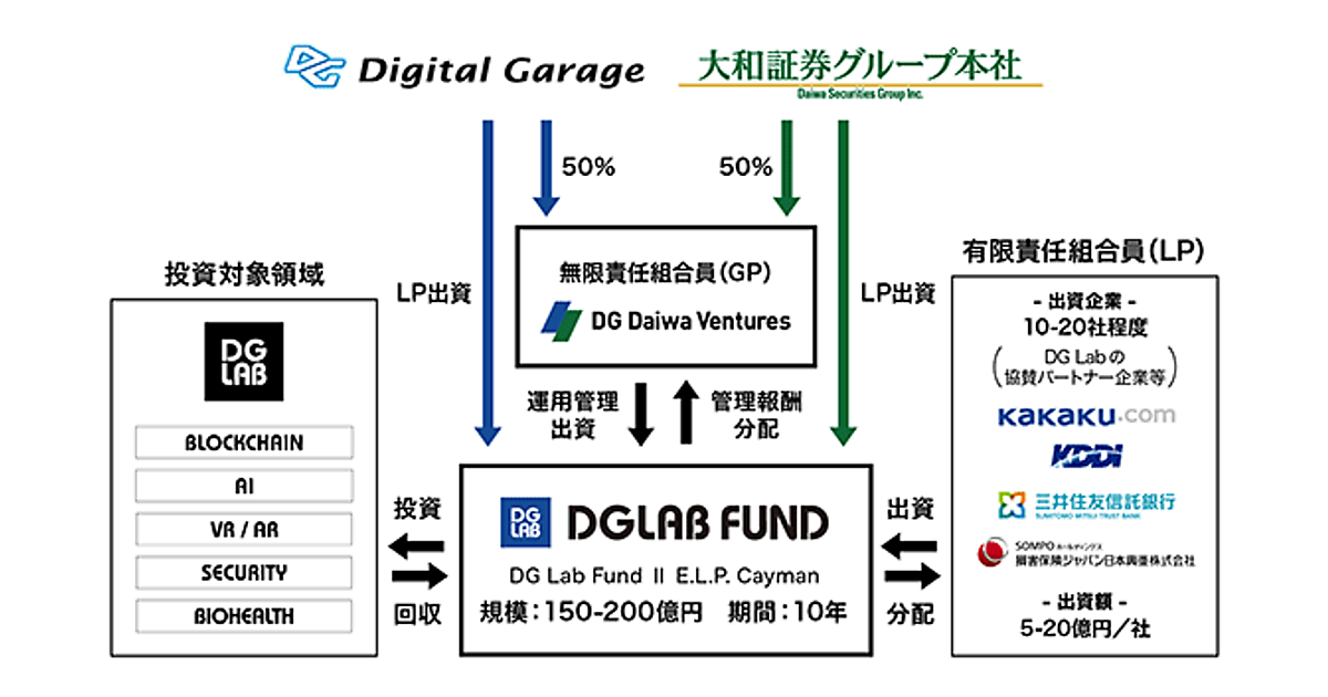 インターネット関連事業のデジタルガレージ(DG)と、大和証券グループ本社が設立したベンチャーキャピタルのDG Daiwa Venturesは、次世代技術を保有する世界のスタートアップ企業向け投資ファンド「DG Lab Fund II E.L.P. Cayman(DG Lab2号ファンド)」を組成した、と8月30日発表した。国内外の企業に投資する。