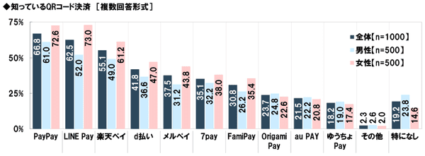 QRコード決済の認知や利用はPayPayがトップ、他サービスも健闘