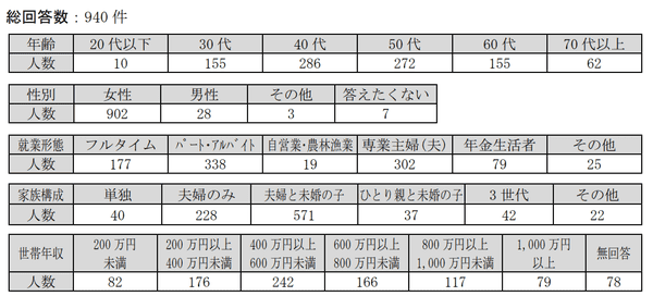 - 【調査対象】日本生協連の「家計・くらしの調査」に登録しているモニター(全国約1,700人にEメールを配信)