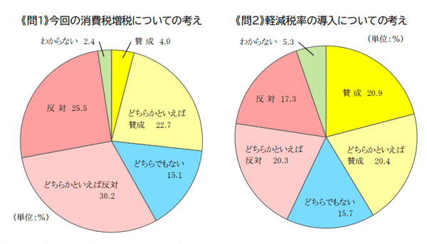 また軽減税率については、「賛成+どちらかといえば賛成」41.3%、「反対+どちらかといえば反対」37.6%で、極端な差はなかったが、反対理由に「分かりづらい」「複雑すぎる」といった回答が多く見られた。