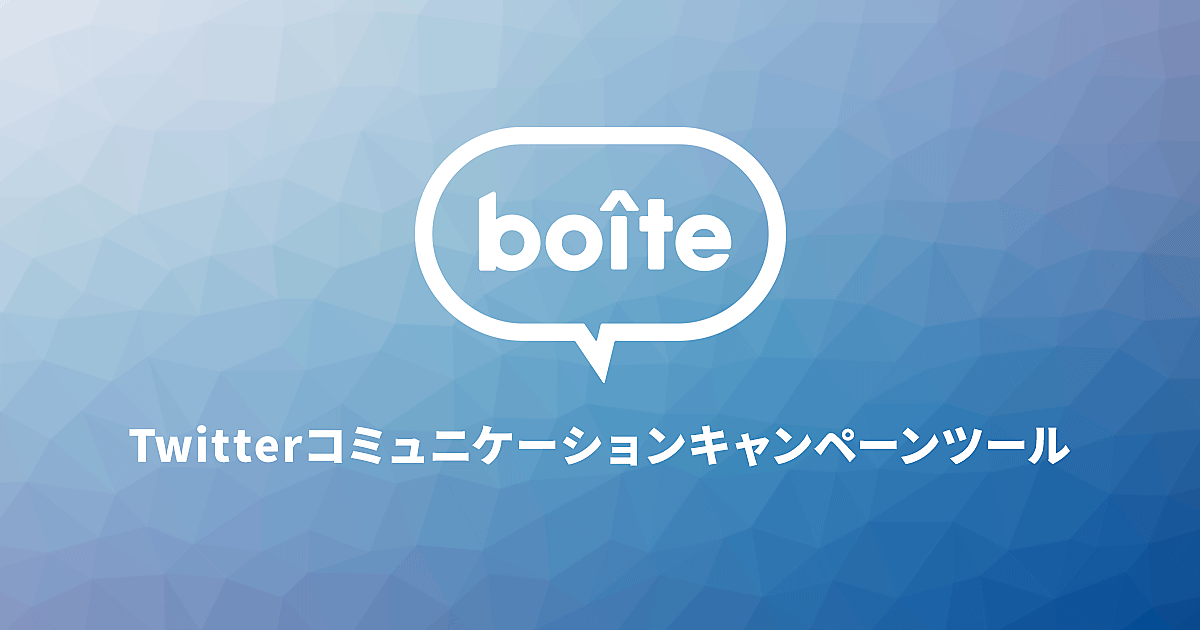 boiteは、Twitter上で企業がキャンペーンを手掛ける際に、拡散力を持つインスタントウィンキャンペーンや、ユーザーアクションの活性化に繋がるチャットボットキャンペーンを簡単に実施することを可能にするツールで、それらのキャンペーンを実施することにより、企業とターゲットユーザー間のコミュニケーションが活性化する。